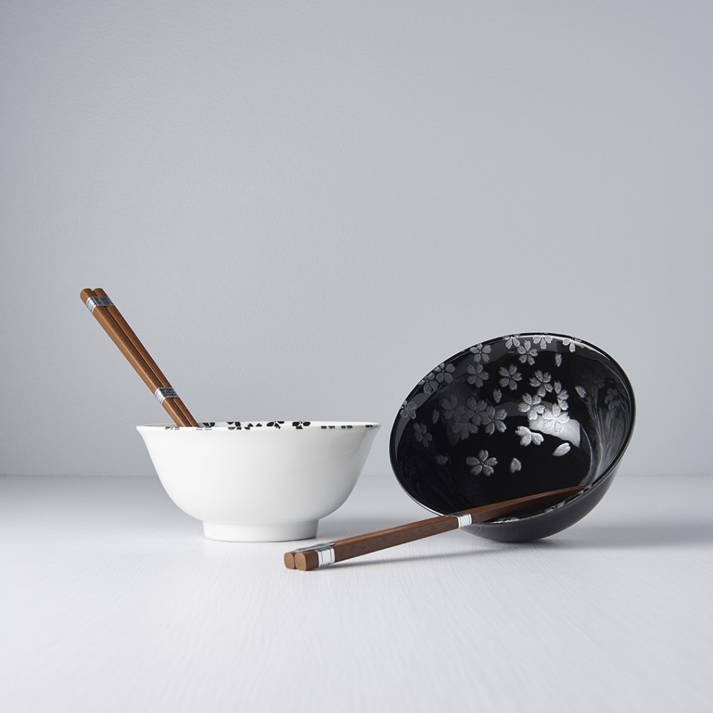 Spiseskål SILVER SAKURA, sæt med 2 stk, 500 ml, med spisepinde, MIJ