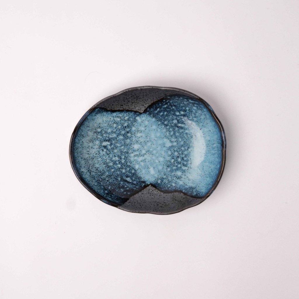 - Kontrasten mellem dybblå og elegant sort skaber en havbølgeeffekt og tilføjer en dramatisk visuel baggrund til selv enkle retter.