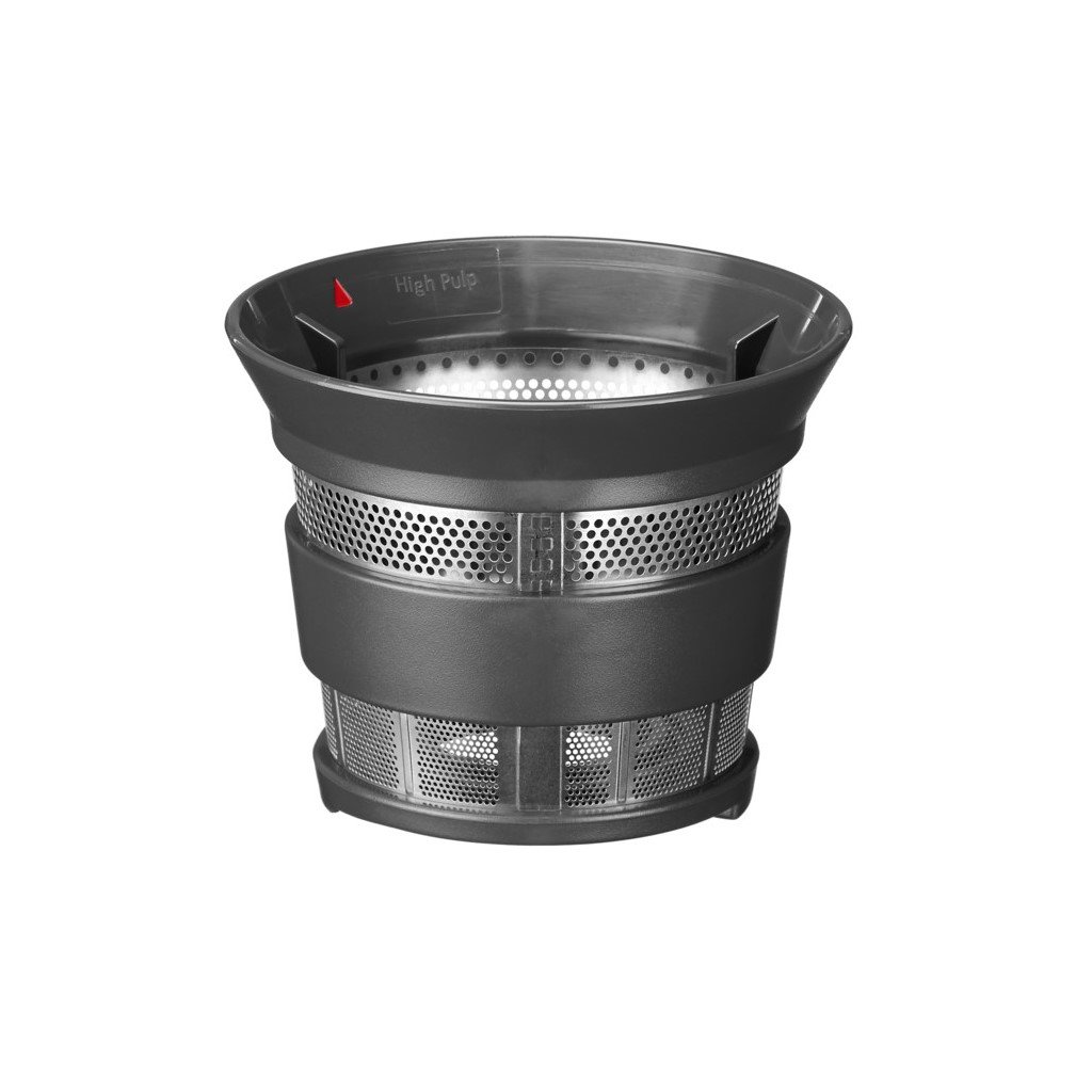 • Low grit stra iner - lavet af poleret rustfrit stål, efterlader mindre grus til finere juice.