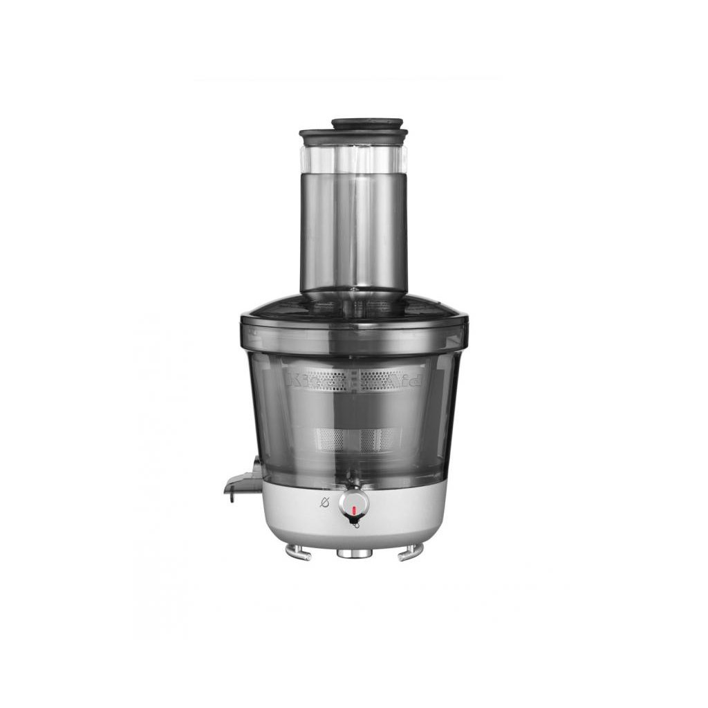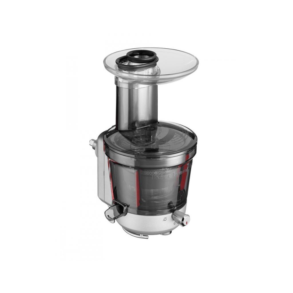 Den ekstra lavhastighedssaftpresser med maksimal juice- eller puréudvinding KitchenAid er et genialt tilbehør, der udvider din robothjælpers funktioner. Med dens hjælp kan du nemt lave frugtsaft med maksimalt indhold af vitaminer og uden skum, velduftende saucer til at smage retter til med eller hjemmelavet syltetøj med masser af smag. Det vil især blive værdsat af dem, der ønsker at spare plads på skrivebordet. Den ekstra saftpresser er lille og kan nemt opbevares, når den fjernes fra foodprocessorens krop.