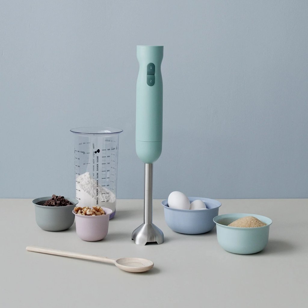 - lysegrøn stavblender FOODIE fra RIG-TIG-mærket er en praktisk hjælper til den daglige tilberedning af forskellige retter i et moderne køkken