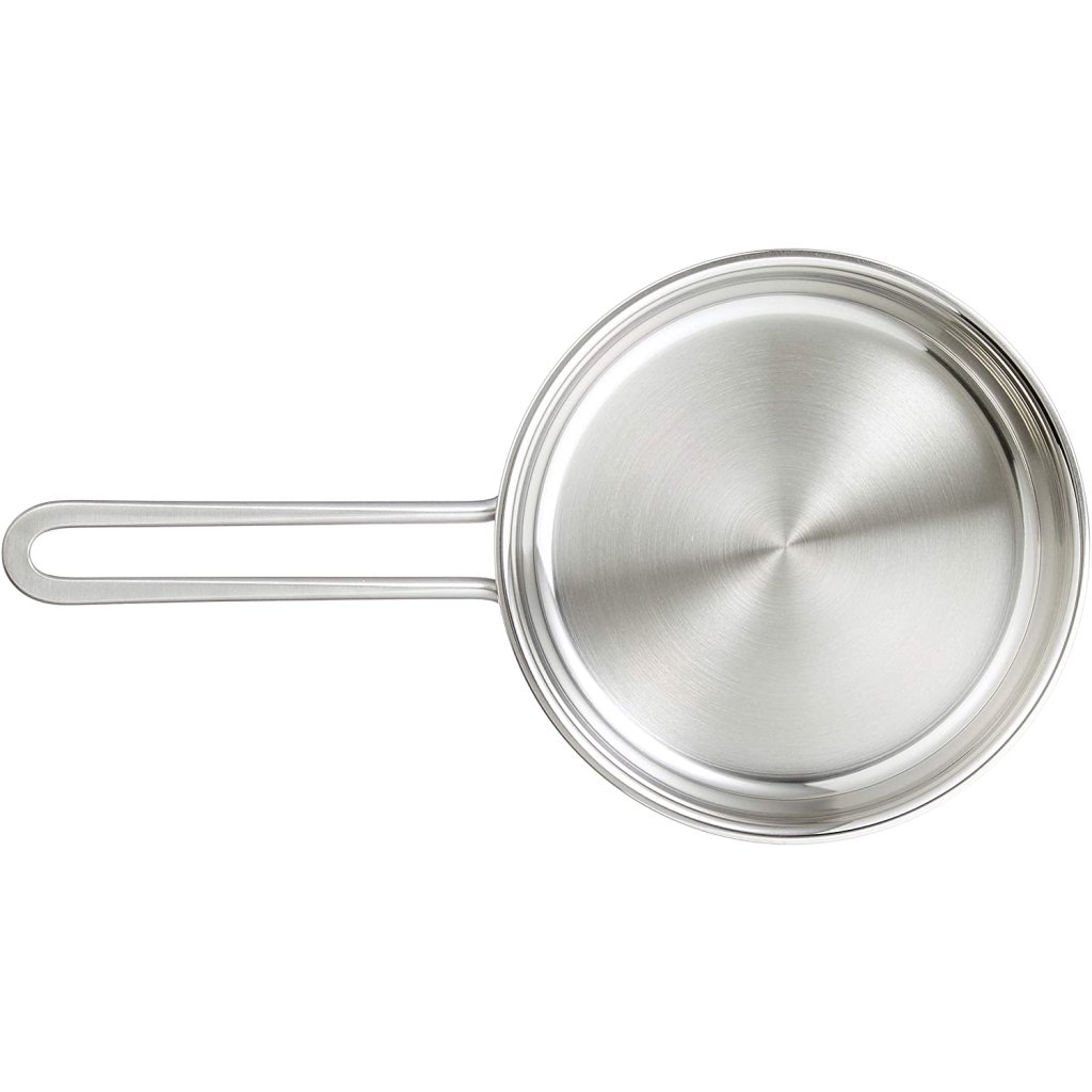 Panden har en diameter på 16 cm og er lavet af rustfrit stål med en kerne af aluminium. Den ridsefaste, satinagtige overflade ser luksuriøs og tidløs ud. Den er velegnet til alle typer komfurer, herunder induktion, ovn op til 200 °C og opvaskemaskine.