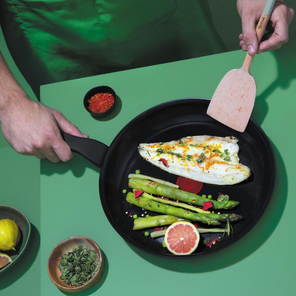 - Den nye generation keramiske non-stick belægning muliggør tilberedning af retter med minimalt eller intet fedtstof, hvilket fremmer en lettere og mere afbalanceret kost.