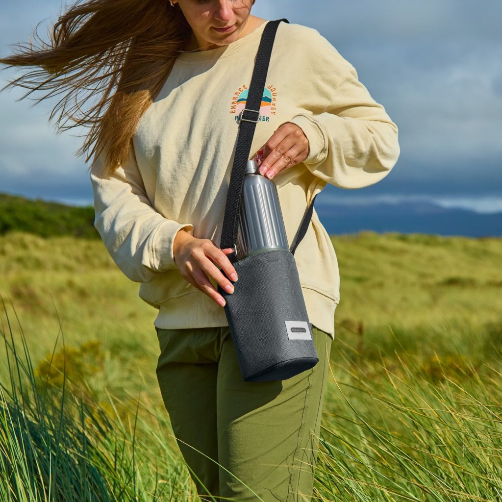 - let og praktisk flasketaske i skifergrå farve, som gør det nemt at have drikkevarer med på rejser, til sport og til hverdagsaktiviteter