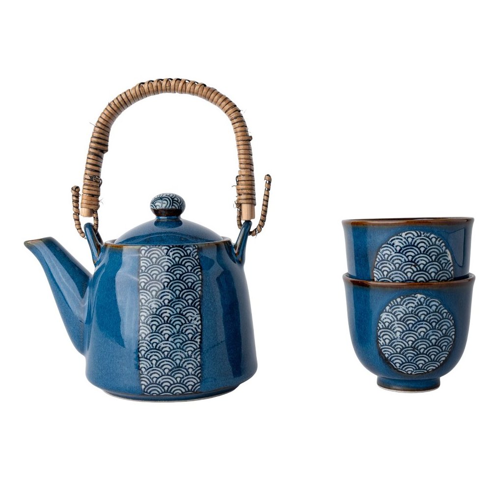 Tesæt BLUE WAVE, sæt med 3 stk, blå, keramik, MIJ
