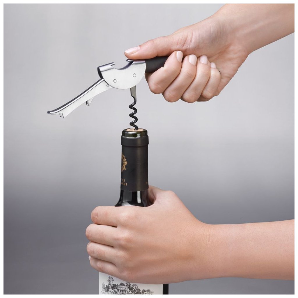 - integreret oplukker og folieskærer til vinflasker i håndtaget