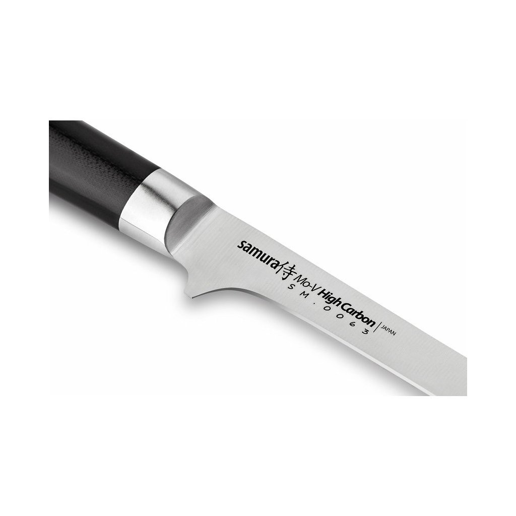 Samura-knive er fremstillet af det bedste japanske og svenske stål, hærdet til 58-61 HRC. Bladene har en japansk form og en let tilspidsning fra spidsen, hvilket giver dem en fantastisk skæreevne. Samura-knive slibes i en vinkel på 17 grader. Det er mere end japanske knive, men mindre end europæiske knive. De bedste moderne materialer bruges til håndtagene: Micarta, G10, stabiliseret træ, plast med en fin finish, Kraton og kompositter.