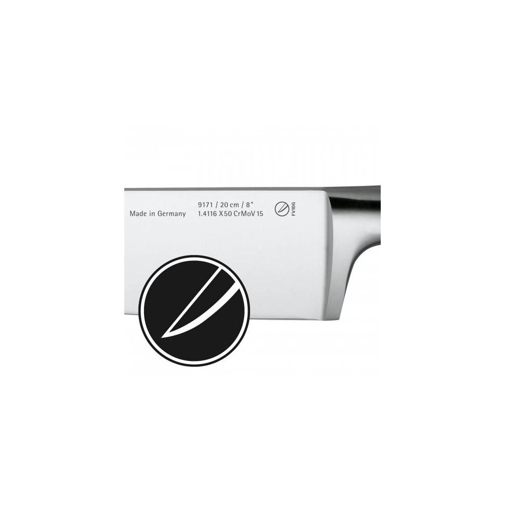 Special Performance Cut-teknologien kombinerer fordelene ved traditionel smedning med fordelene ved moderne fremstillingsprocesser. Resultatet er en fremragende kant. Præcis slibning i en konstant vinkel er også afgørende for fremragende knivkvalitet. Det er det flade snit, der gør knivene så skarpe.