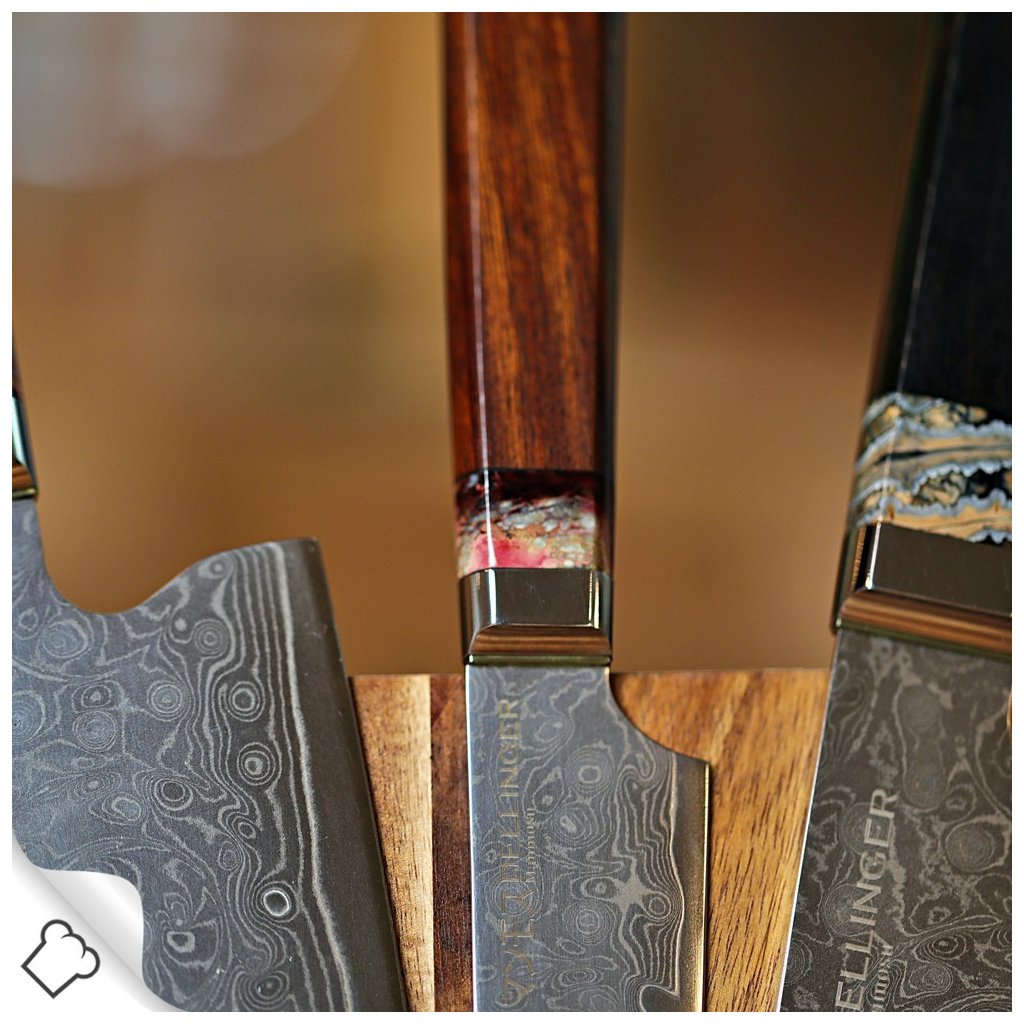 - Damascenermønsteret på denne kniv er unikt og kan ikke gentages