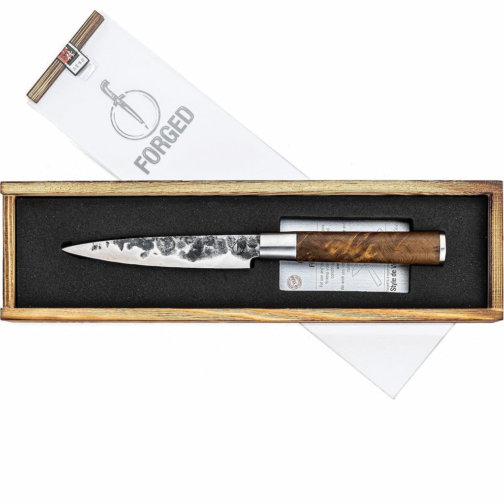 - universalkniv Forged VG10 med et 12,5 cm langt blad er en god hjælper til det daglige køkkenarbejde, når præcision og hastighed er påkrævet