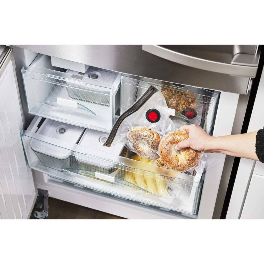- det resulterende vakuum forlænger friskheden af opbevarede fødevarer op til 5 gange