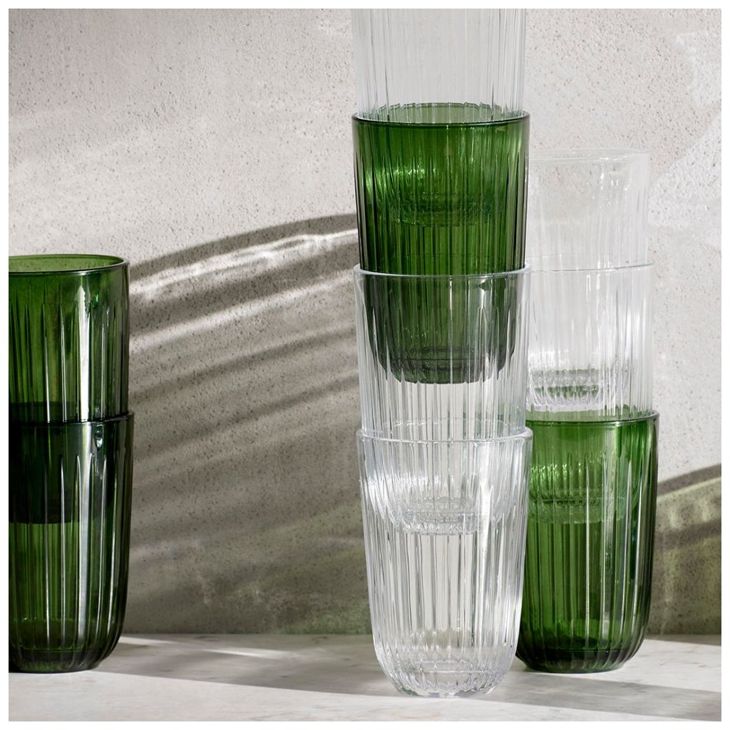 Disse elegante vandglas fra Kähler er lavet af klart glas og er dekoreret med de legendariske riller, der er typiske for Hammershøi-kollektionen af praktisk køkkenudstyr og smukt stel. De subtile riller, brillernes afbalancerede proportioner og deres vægt giver et godt greb og gør dem til en fornøjelse at bruge.