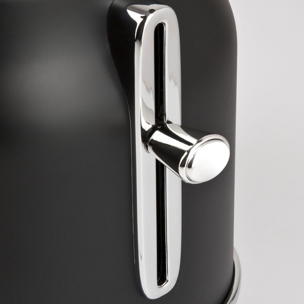 - Mat sort farve kombineret med kromelementer giver enheden et elegant og retro look