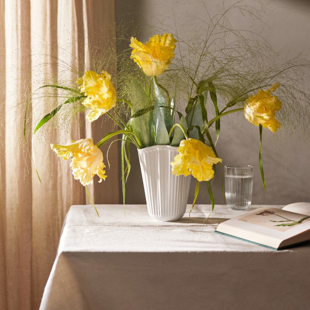 - vase er ideel til forårs- og sommerblomster, da dens form optisk forlænger og fremhæver hver blomst.