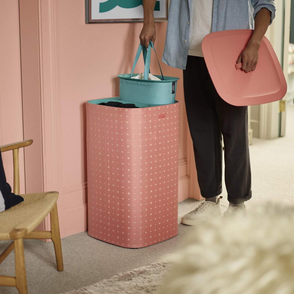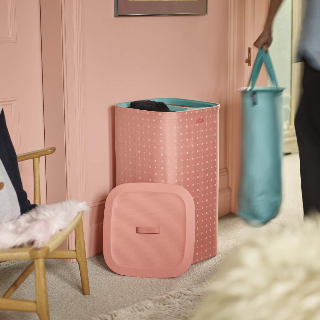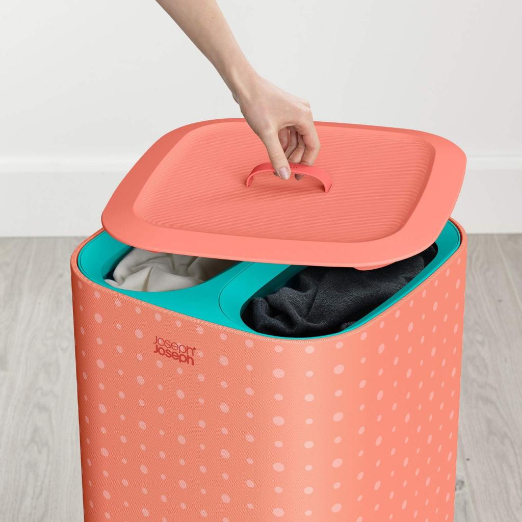 - Vasketøjsbeholder Joseph Joseph TOTA POP i koral design er en praktisk og stilfuld løsning til overskuelig sortering af vasketøj i soveværelset, badeværelset eller bryggerset.