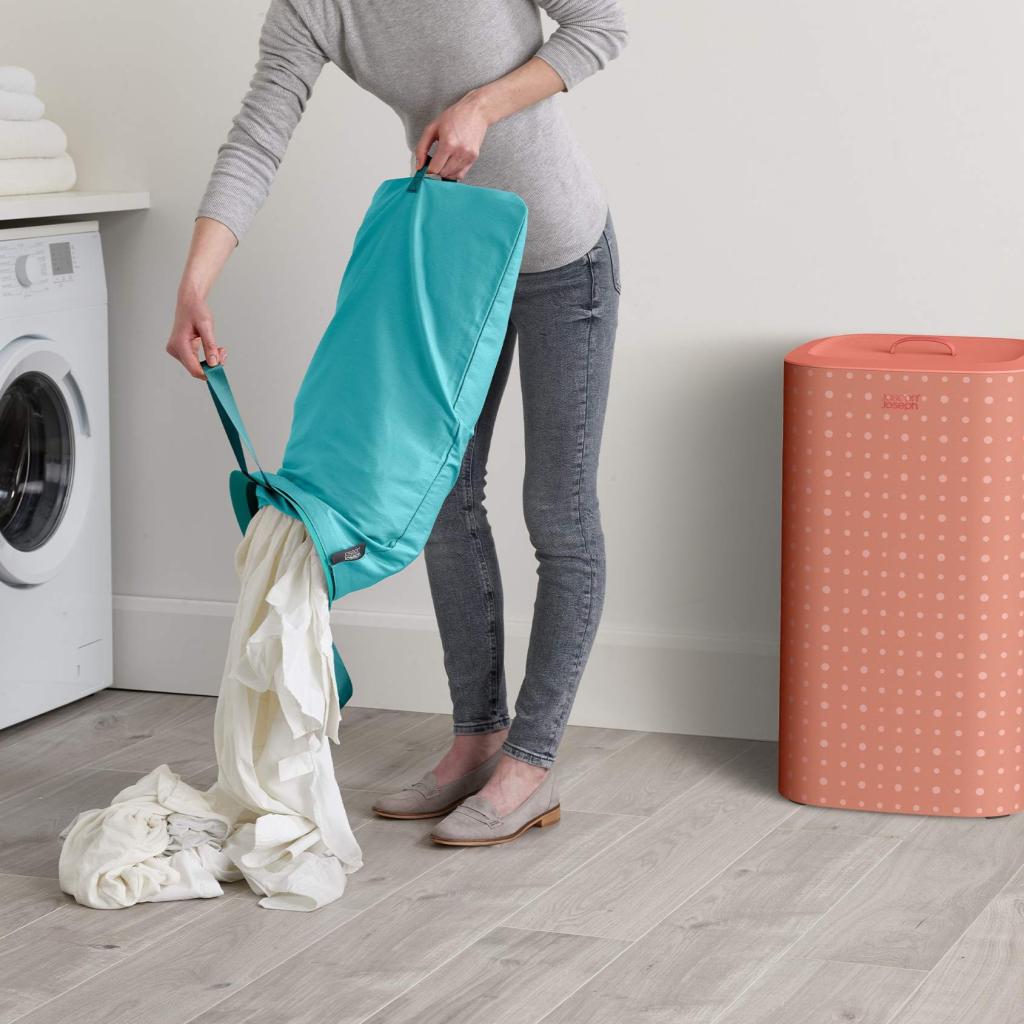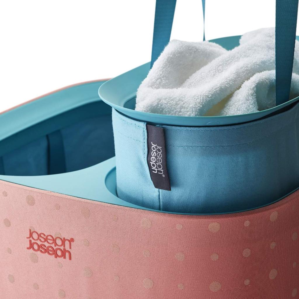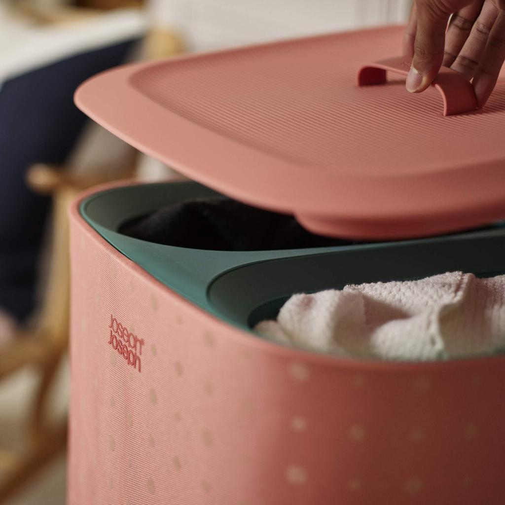 - Vasketøjsbeholder Joseph Joseph TOTA POP i koral design er en praktisk og stilfuld løsning til overskuelig sortering af vasketøj i soveværelset, badeværelset eller bryggerset.