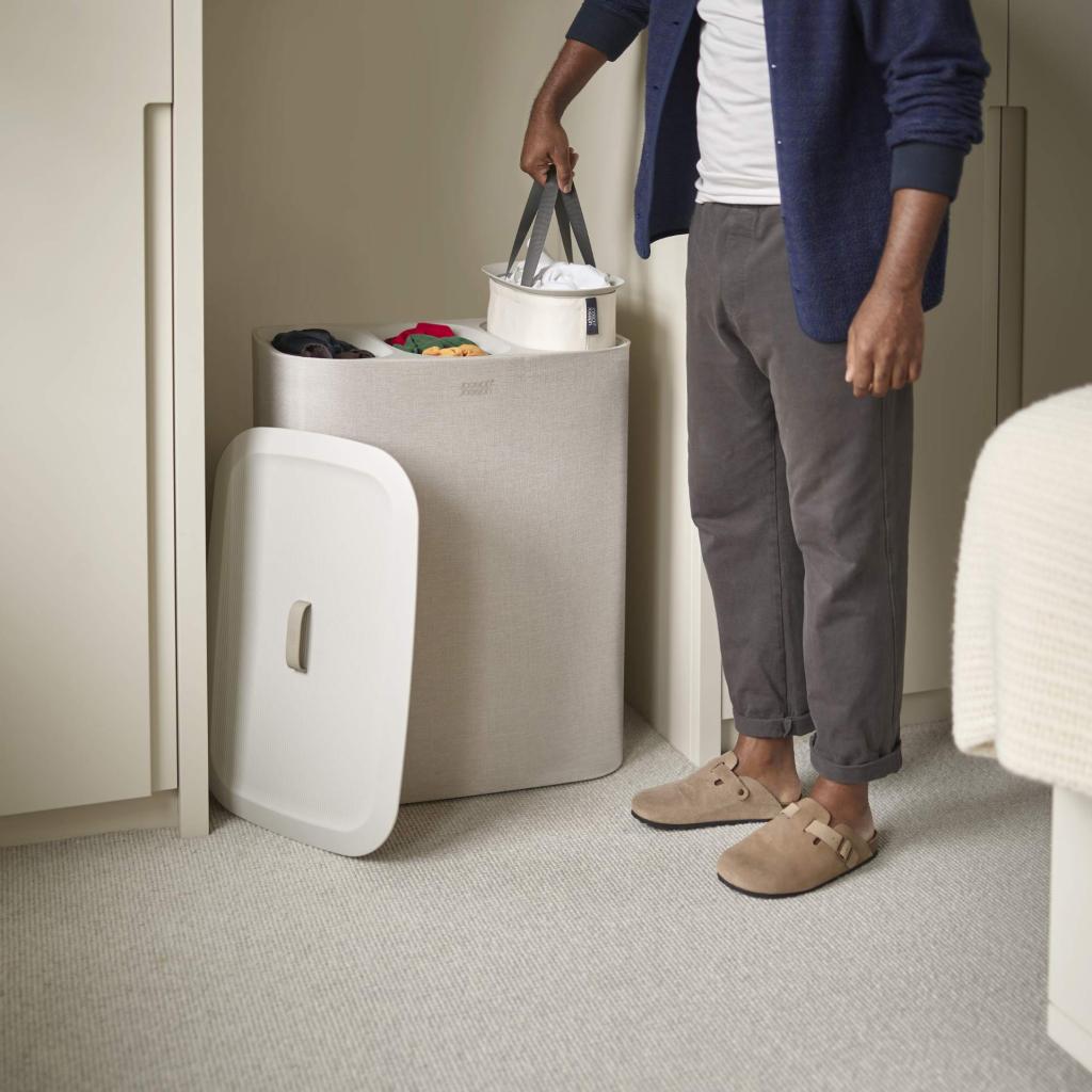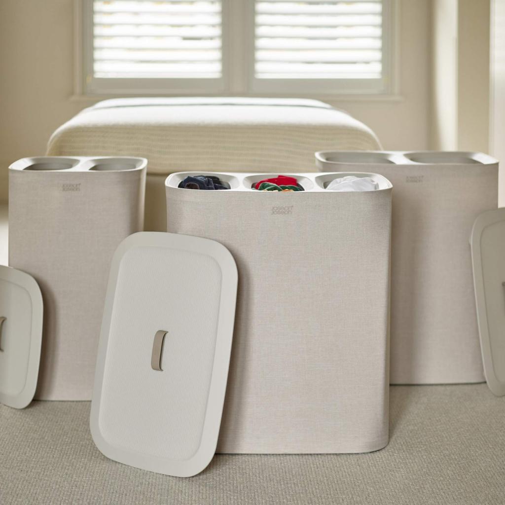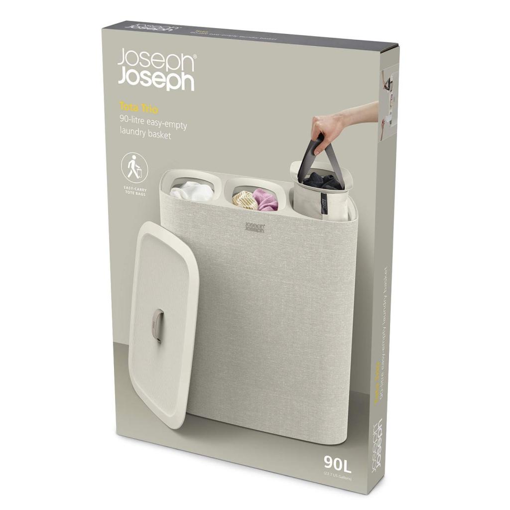 - Vasketøjsbeholder Joseph Joseph TOTA TRIO i ecru tilbyder en praktisk og overskuelig løsning til sortering af vasketøj i soveværelset, badeværelset eller bryggerset.