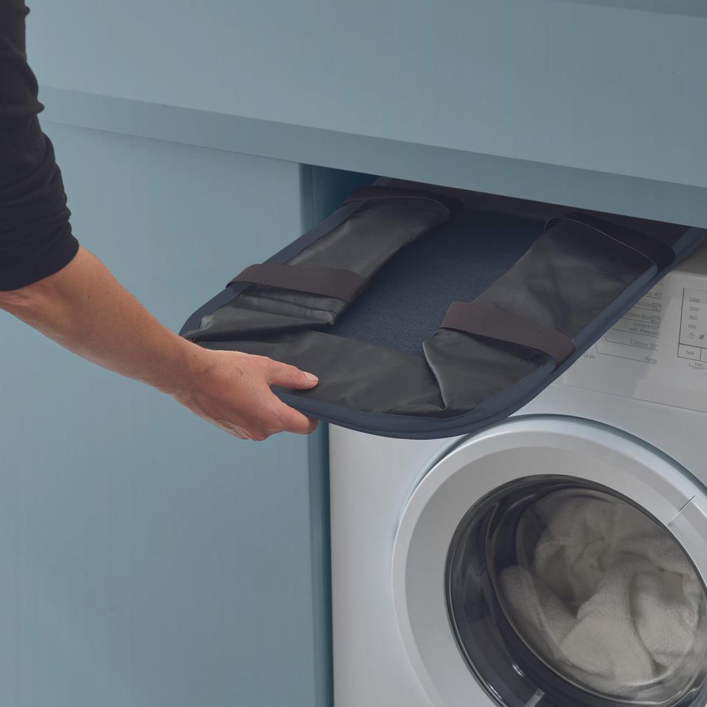 - Takket være muligheden for at folde den fladt, kan du nemt skubbe den ind i et smalt rum ved siden af vaskemaskinen eller opbevare den i et skab, når du ikke bruger den.