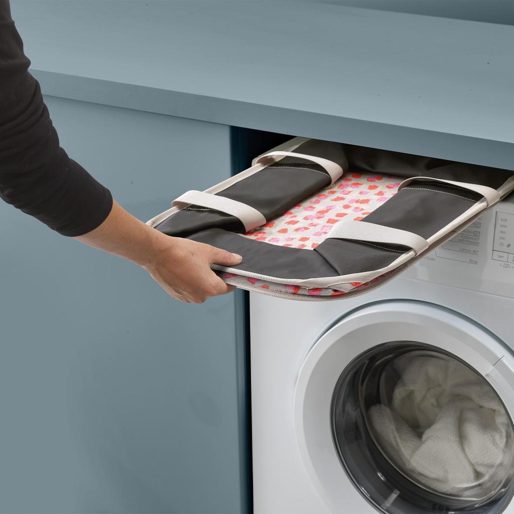 - Takket være muligheden for at folde den fladt, kan du nemt skubbe den ind i et smalt rum ved siden af vaskemaskinen eller opbevare den i et skab, når du ikke bruger den.