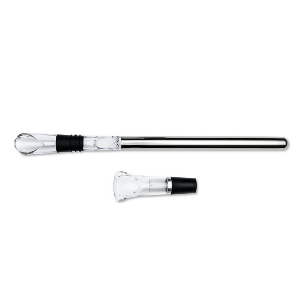 Proptrækkeren fra Luxury-serien er lavet af rustfrit stål af høj kvalitet, og det dekorerede håndtag er lavet af egetræ. Proptrækkeren er udstyret med et to-trins håndtag og fem spiraler. Sættet indeholder også to designpropper, en hældetud og en dyse med kølestang.
