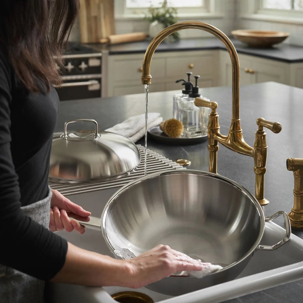 - halvmat udseende lavet af 18/10 rustfrit stål med fem lag