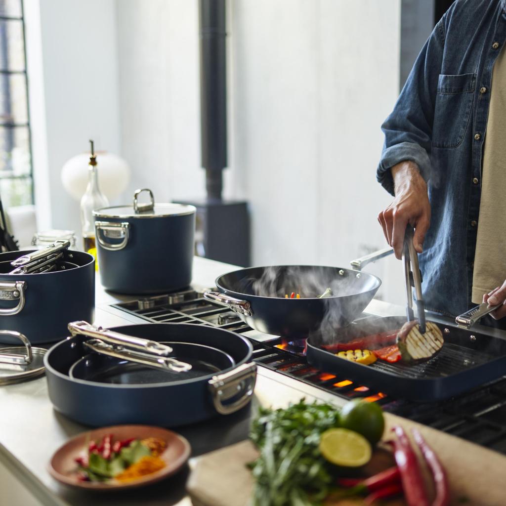 - Belægningen indeholder ikke PTFE, PFAS, PFOA, bly eller cadmium, hvilket gør den velegnet til daglig madlavning med fokus på sikkerhed.